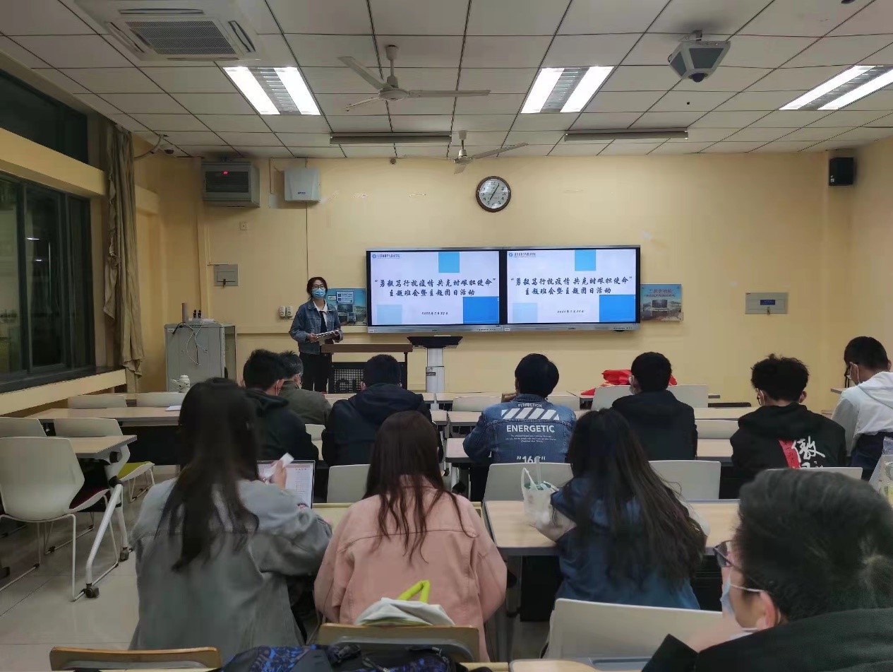 团支书成晓涵同学向同学们介绍近期新冠疫情的严峻形势,普及新冠病毒毒株的变异发展过程,提醒各位同学严格遵守疫情防控政策,引导同学们将错峰就餐、佩戴口罩等防疫要求落实到位,共同抗击、战胜新冠疫情。